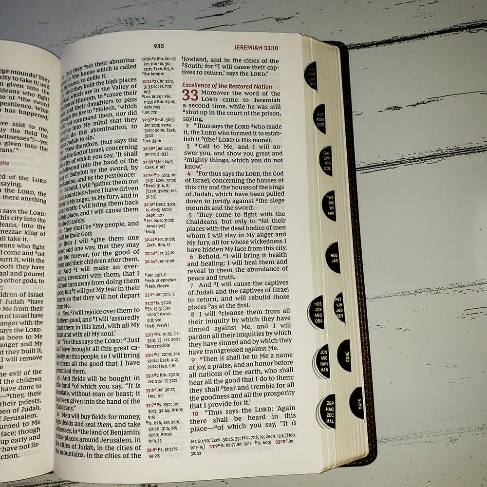 I love this Bible, the font size is just right. I like the indexed books. I am just beginning reading it. I finished Genesis the other day, actually it was Wednesday about 5:30 am so that makes it officially Thursday. I am sure I will read it again, once I am done, but I want to keep a record of it.