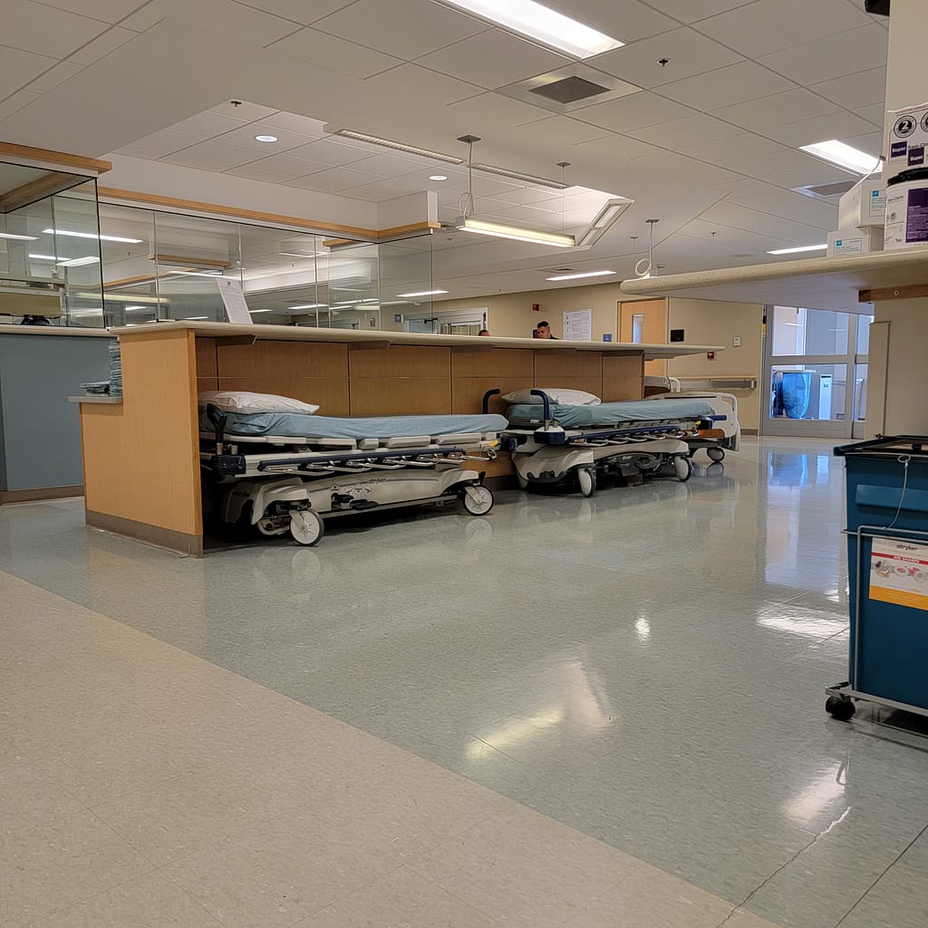 It took them about an hour to finally give him the medication, and after about another 30 minutes, they let him go home. However, this did not last. He began experiencing the pain again. Going back to the ER was not an option, as they would just give him the same thing. Instead, he decided to speak with his PCP on a virtual appointment. She in turn prescribed him some muscle relaxers and some pain meds. He has been on that since going to the ER. Photos of us waiting in the ER, he was on a bed, but I didn’t want to post that. He had no room because they were expecting an ambulance, so we got stuck in the hall. At least it wasn’t that noisy. The other rooms were already full.