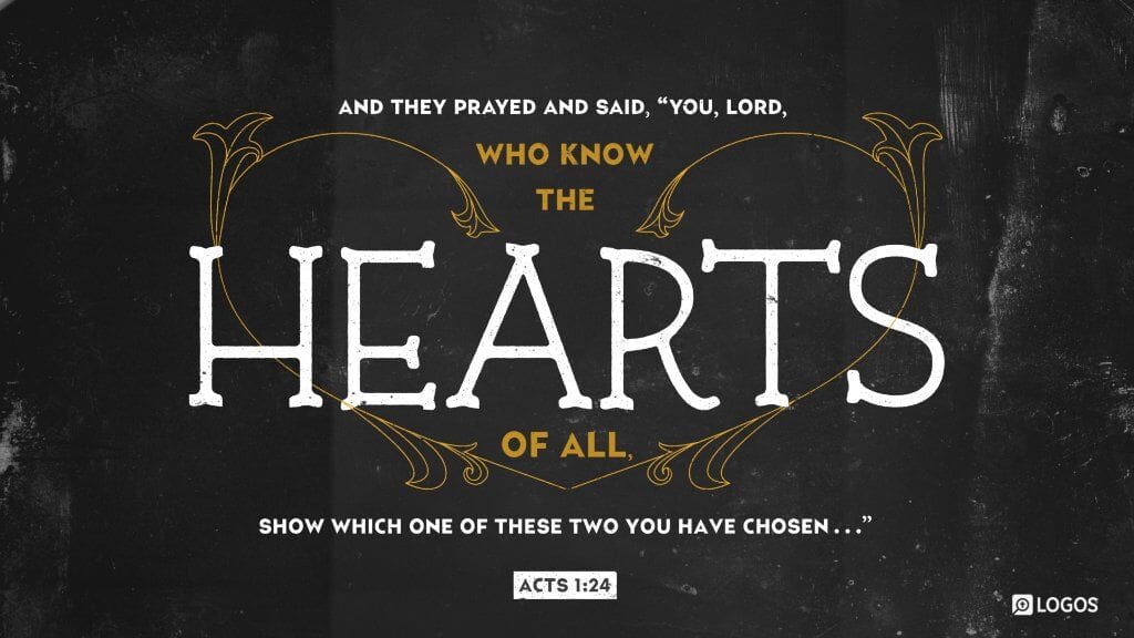 Acts 1:24–25 (NKJV): And they prayed and said, “You, O Lord, who know the hearts of all, show which of these two You have chosen 25 to take part in this ministry and apostleship from which Judas by transgression fell, that he might go to his own place.”