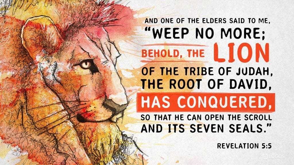 Revelation 5:5 [NKJV]: But one of the elders said to me, “Do not weep. Behold, the Lion of the tribe of Judah, the Root of David, has prevailed to open the scroll and to loose its seven seals.”