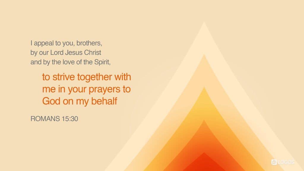 Romans 15:30 [NKJV]: Now I beg you, brethren, through the Lord Jesus Christ, and through the love of the Spirit, that you strive together with me in prayers to God for me,
