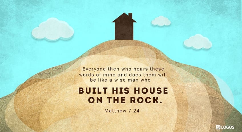 Matthew 7:24 [NKJV]: 24 “Therefore whoever hears these sayings of Mine, and does them, I will liken him to a wise man who built his house on the rock: