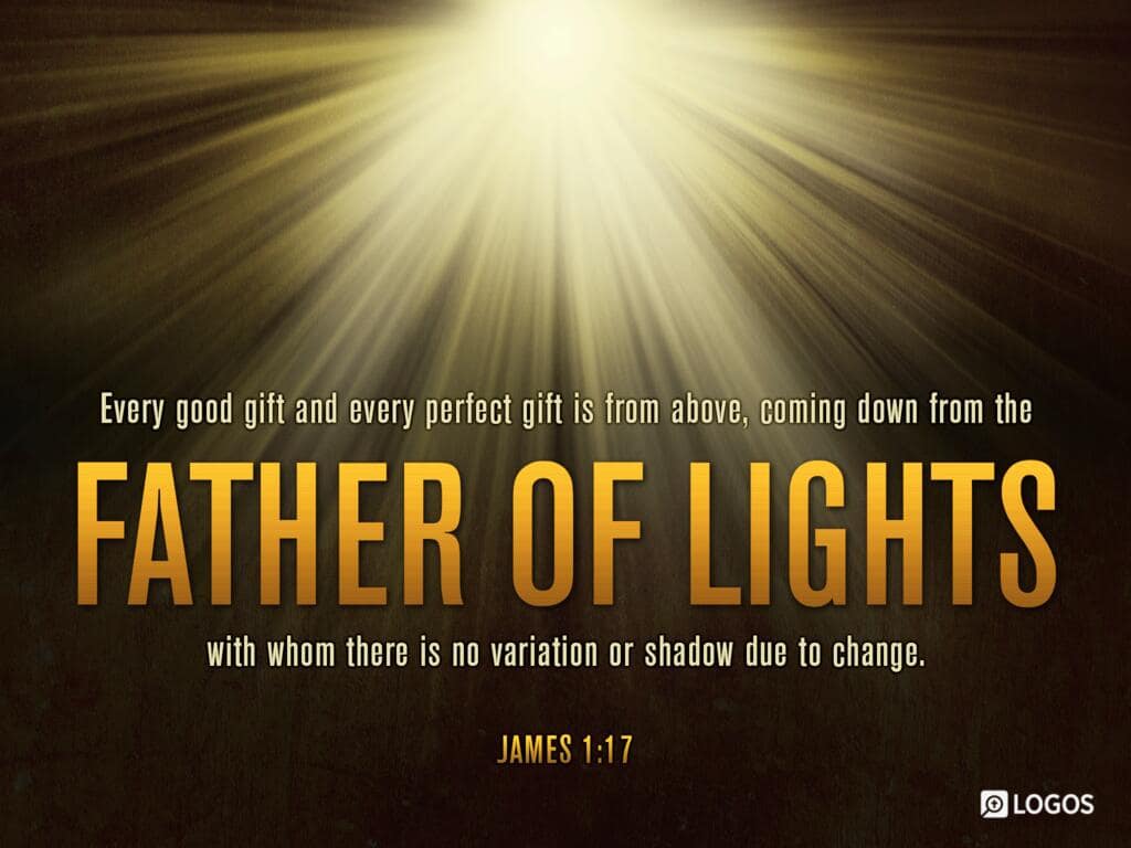 James 1:17–18 [NKJV]: 17 Every good gift and every perfect gift is from above, and comes down from the Father of lights, with whom there is no variation or shadow of turning. 18 Of His own will He brought us forth by the word of truth, that we might be a kind of first fruits of His creatures.