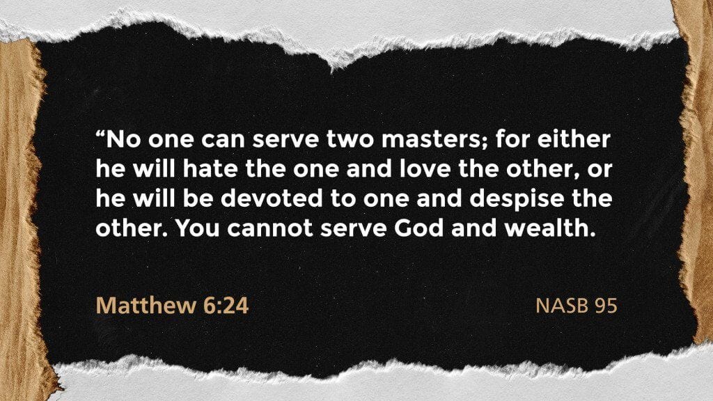 Matthew 6:24 [NASB]: “No one can serve two masters; for either he will hate the one and love the other, or he will be devoted to one and despise the other. You cannot serve God and wealth.