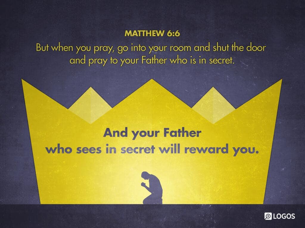 Matthew 6:6 [ NASB]: But you, when you pray, go into your inner room, close your door and pray to your Father who is in secret, and your Father who sees what is done in secret will reward you.