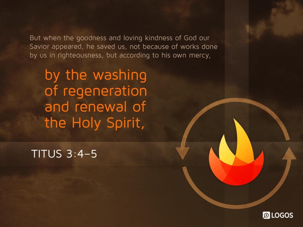 Titus 3:4-7 [ESV]: 4 But when the goodness and loving kindness of God our Savior appeared, 5 he saved us, not because of works done by us in righteousness, but according to his own mercy, by the washing of regeneration and renewal of the Holy Spirit, 6 whom he poured out on us richly through Jesus Christ our Savior, 7 so that being justified by his grace we might become heirs according to the hope of eternal life.