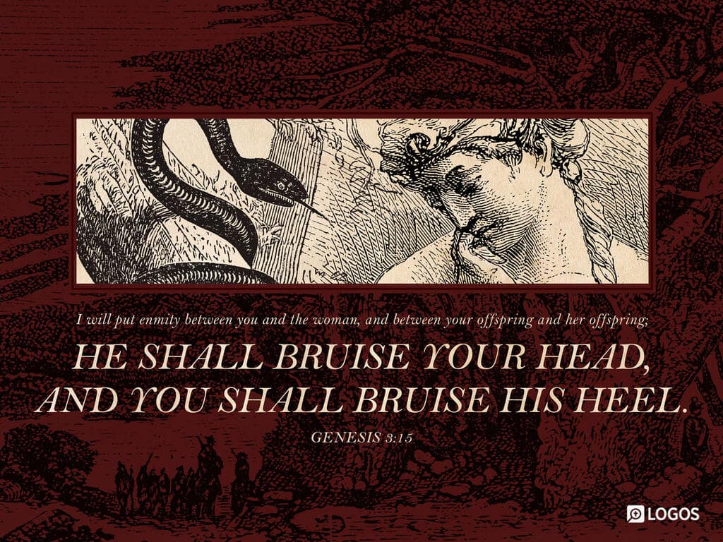 Genesis 3:15 [ESV]: 15 I will put enmity between you and the woman, and between your offspring and her offspring; he shall bruise your head, and you shall bruise his heel.”