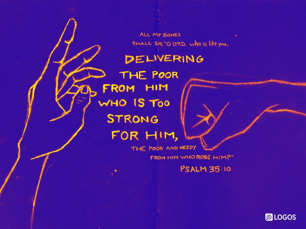 Psalm 35:10 [ESV]: 10 All my bones shall say, “O LORD, who is like you, delivering the poor from him who is too strong for him, the poor and needy from him who robs him?”