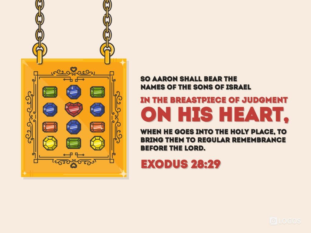 Exodus 28:29 [ESV]: 29 So Aaron shall bear the names of the sons of Israel in the breastpiece of judgment on his heart, when he goes into the Holy Place, to bring them to regular remembrance before the LORD.