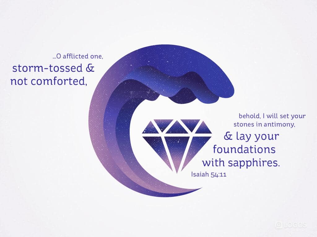 Isaiah 54:11 [ESV]: 11 “O afflicted one, storm-tossed and not comforted, behold, I will set your stones in antimony, and lay your foundations with sapphires.