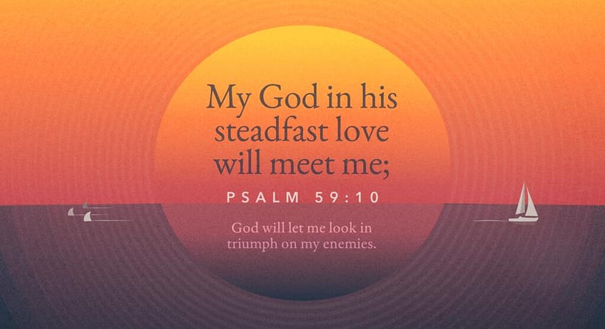 https://ref.ly/Ps59.10;esvPsalm 59:10 [ESV]: 10 My God in his steadfast love will meet me; God will let me look in triumph on my enemies.