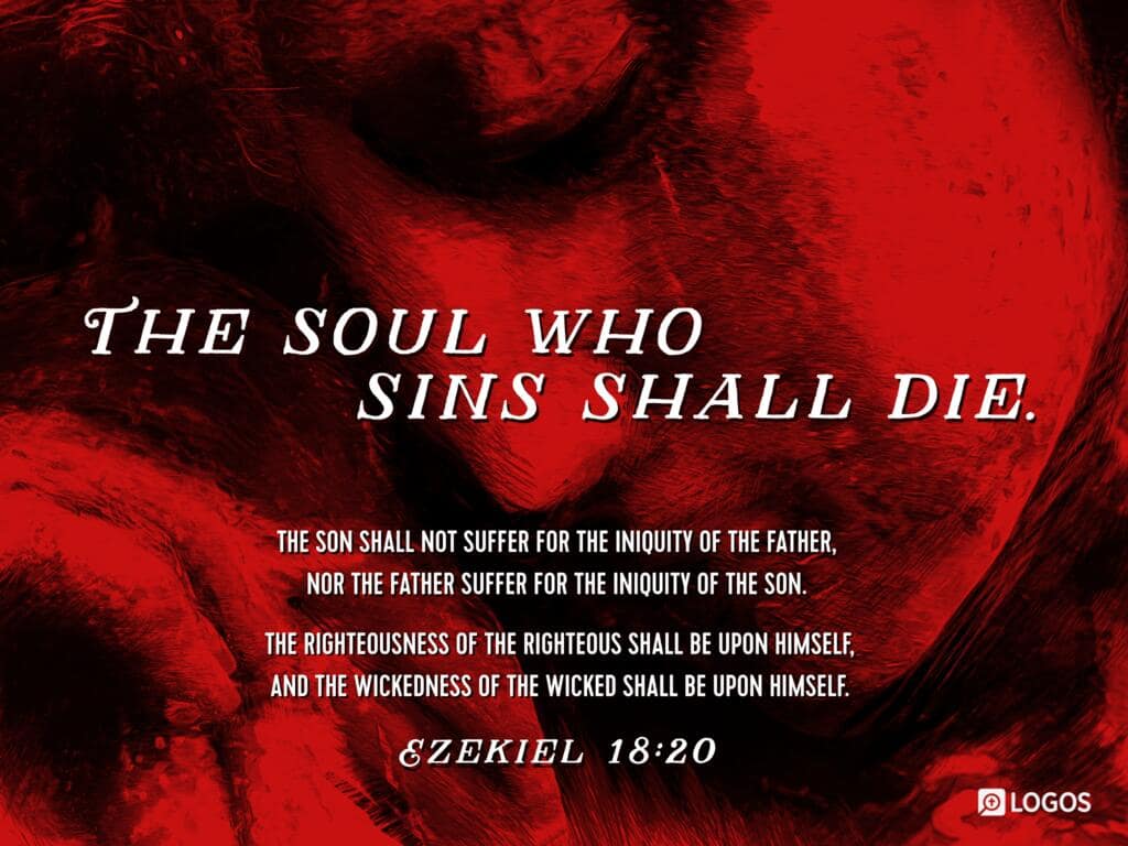 Ezekiel 18:20 [ESV]: 20 The soul who sins shall die. The son shall not suffer for the iniquity of the father, nor the father suffer for the iniquity of the son. The righteousness of the righteous shall be upon himself, and the wickedness of the wicked shall be upon himself.