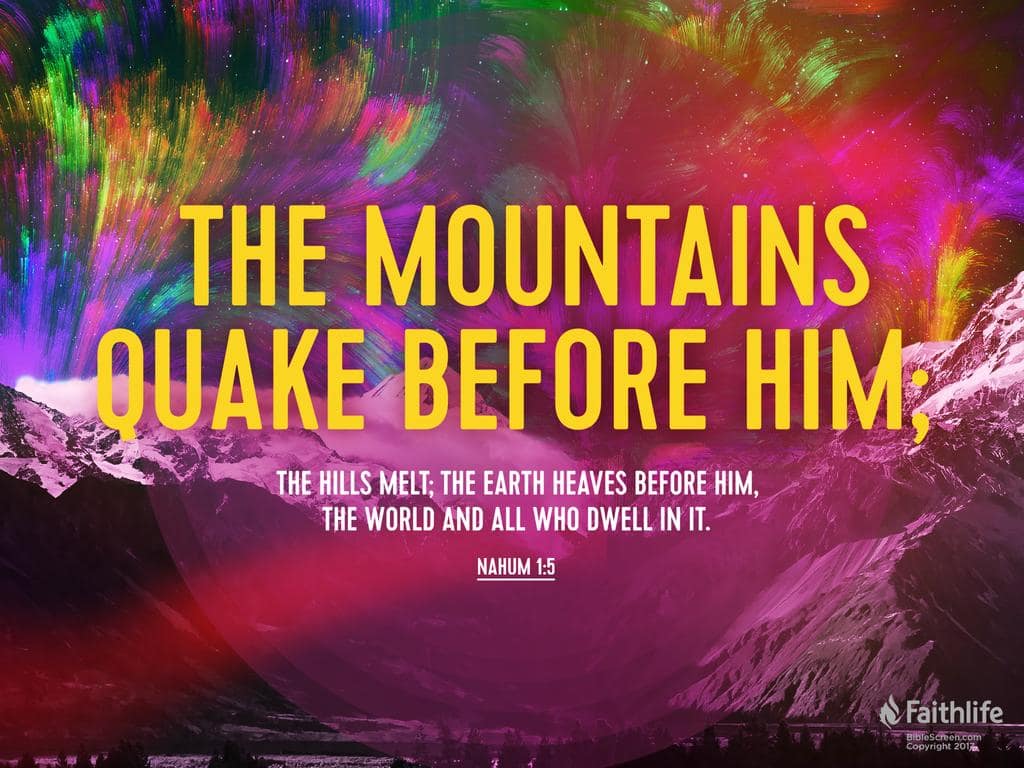 Bible, Faith, Family, Friends, God, Holiday, Internet, Life, Love, Personal, Pets, Prayer, Religion, Social Media, Website Nahum 1:5 [ESV] December 22, 2025December 22, 2025 / Emily/ Leave a comment https://ref.ly/Na1.5;esv Nahum 1:5 [ESV]: 5 The mountains quake before him; the hills melt; the earth heaves before him, the world and all who dwell in it. Share this: Click to share on Facebook (Opens in new window) Facebook Click to share on X (Opens in new window) X Tags: Bible, Bible Verse, Cats, Faith, God, Jesus, Jesus Christ, Lord, Pets, Prayer, Religion