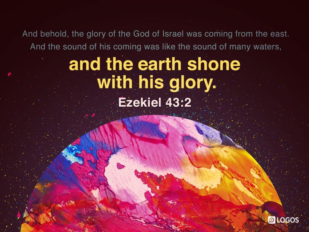 Ezekiel 43:2 [ESV]: 2 And behold, the glory of the God of Israel was coming from the east. And the sound of his coming was like the sound of many waters, and the earth shone with his glory.