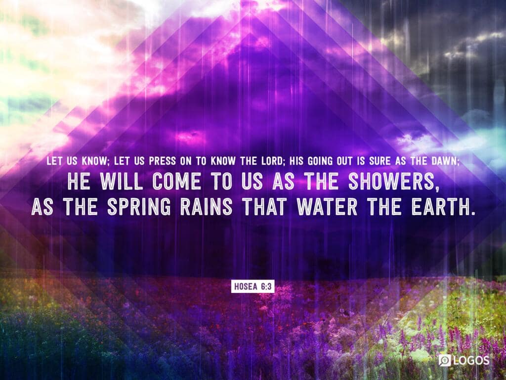 Hosea 6:3 [ESV]: 3 Let us know; let us press on to know the LORD; his going out is sure as the dawn; he will come to us as the showers, as the spring rains that water the earth.”