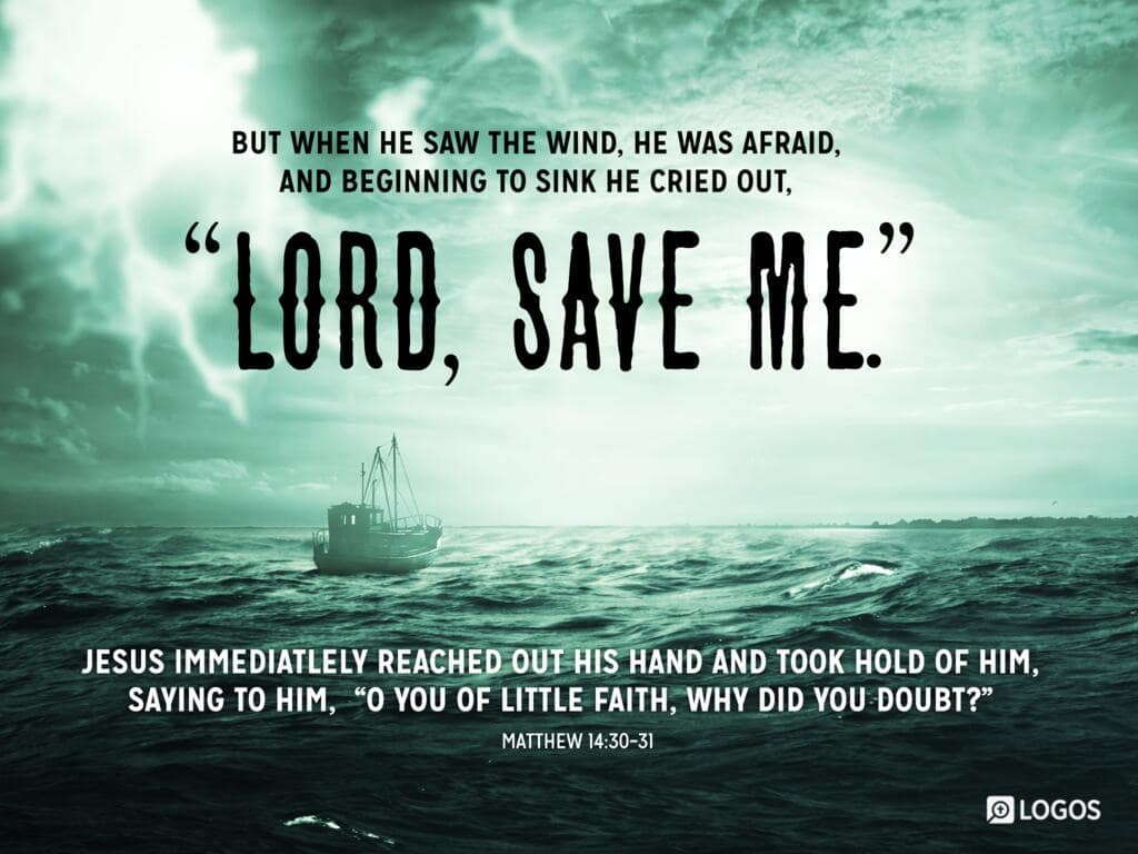 Matthew 14:30–31 [ESV]: 30 But when he saw the wind, he was afraid, and beginning to sink he cried out, “Lord, save me.” 31 Jesus immediately reached out his hand and took hold of him, saying to him, “O you of little faith, why did you doubt?”