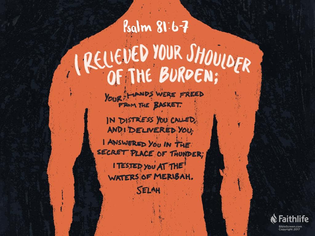 Psalm 81:6–7 [ESV]: 6 “I relieved your shoulder of the burden; your hands were freed from the basket. 7 In distress you called, and I delivered you; I answered you in the secret place of thunder; I tested you at the waters of Meribah. Selah