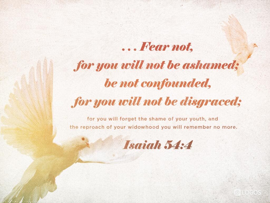 Isaiah 54:4 [ESV]: 4 “Fear not, for you will not be ashamed; be not confounded, for you will not be disgraced; for you will forget the shame of your youth, and the reproach of your widowhood you will remember no more.