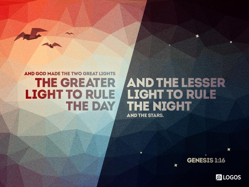 Genesis 1:16 [ESV]: 16 And God made the two great lights—the greater light to rule the day and the lesser light to rule the night—and the stars.