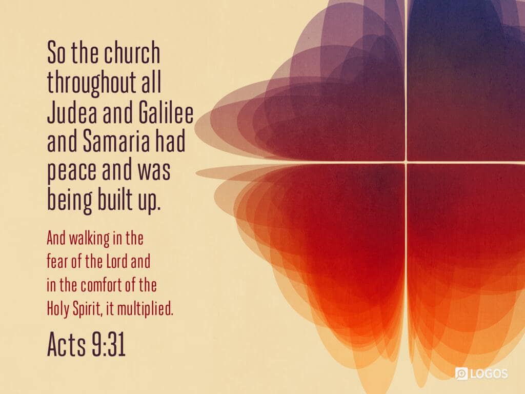 Acts 9:31 [ESV]: 31 So the church throughout all Judea and Galilee and Samaria had peace and was being built up. And walking in the fear of the Lord and in the comfort of the Holy Spirit, it multiplied.