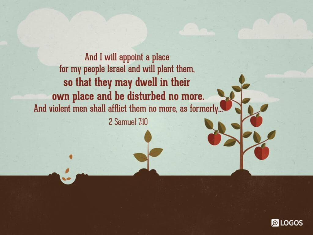 2 Samuel 7:10 [ESV]: 10 And I will appoint a place for my people Israel and will plant them, so that they may dwell in their own place and be disturbed no more. And violent men shall afflict them no more, as formerly,