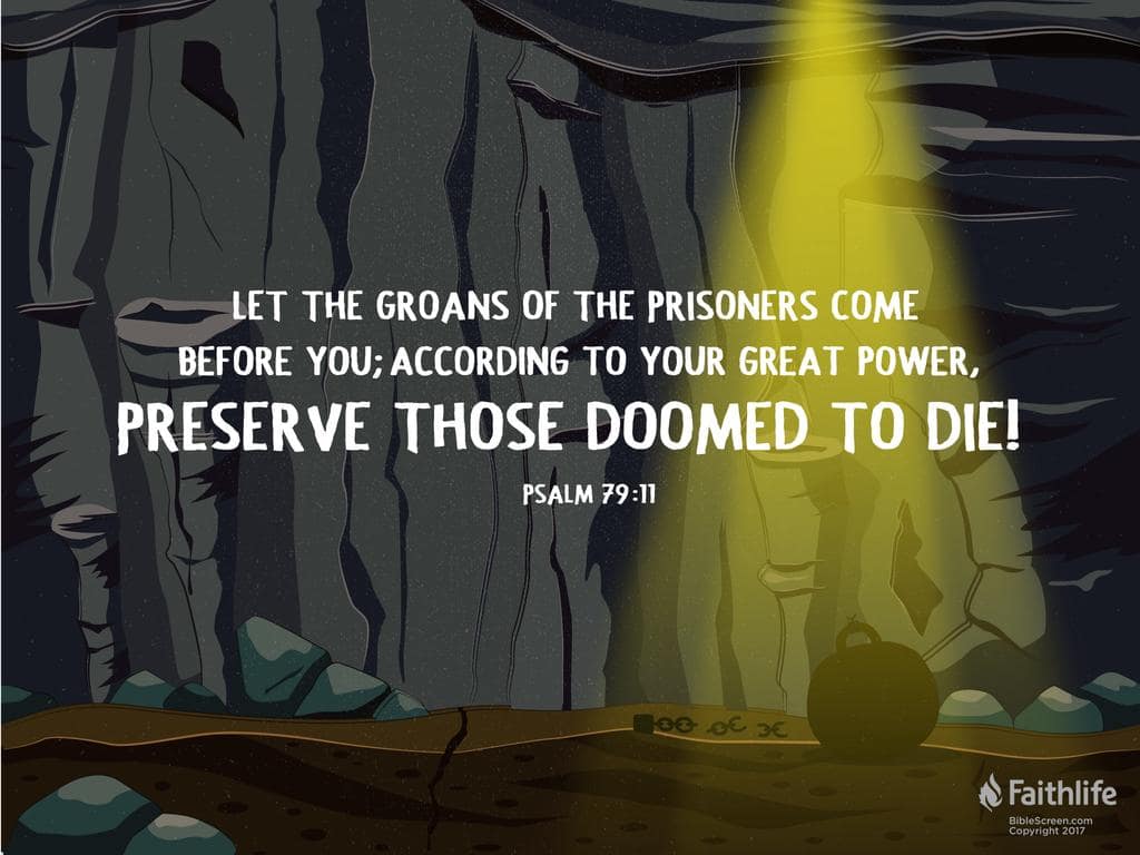 Psalm 79:11 [ESV]: 11 Let the groans of the prisoners come before you; according to your great power, preserve those doomed to die!