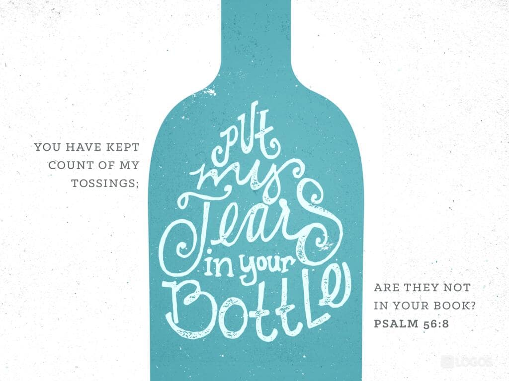 Bible, Faith, Family, Friends, God, Internet, Life, Love, Personal, Prayer, Religion, Social Media, Website Psalm 56:8 [ESV] April 28, 2026April 28, 2026 / Emily/ Leave a comment https://ref.ly/Ps56.8;esv Psalm 56:8 [ESV]: 8 You have kept count of my tossings; put my tears in your bottle. Are they not in your book? Share this: Share on Facebook (Opens in new window) Facebook Share on X (Opens in new window) X Tags: Bible, Bible Verse, Faith, God, Jesus, Jesus Christ, Lord, Prayer, Religion